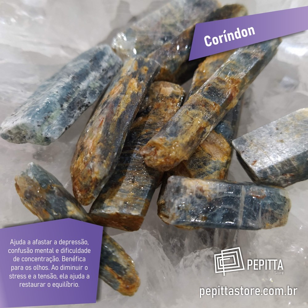 Coríndon – ajuda a afastar a depressão, confusão mental e dificuldade de concentração. Benéfica para os olhos. Ao diminuir o stress e a tensão, ela ajuda a restaurar o equilíbrio.